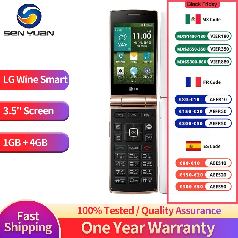 Original LG Wine Smart D486 4G Mobile Phone 3.5» 1GB RAM 4GB ROM 3MP Support Hebrew Language Quad Core Classic Flip CellPhone
