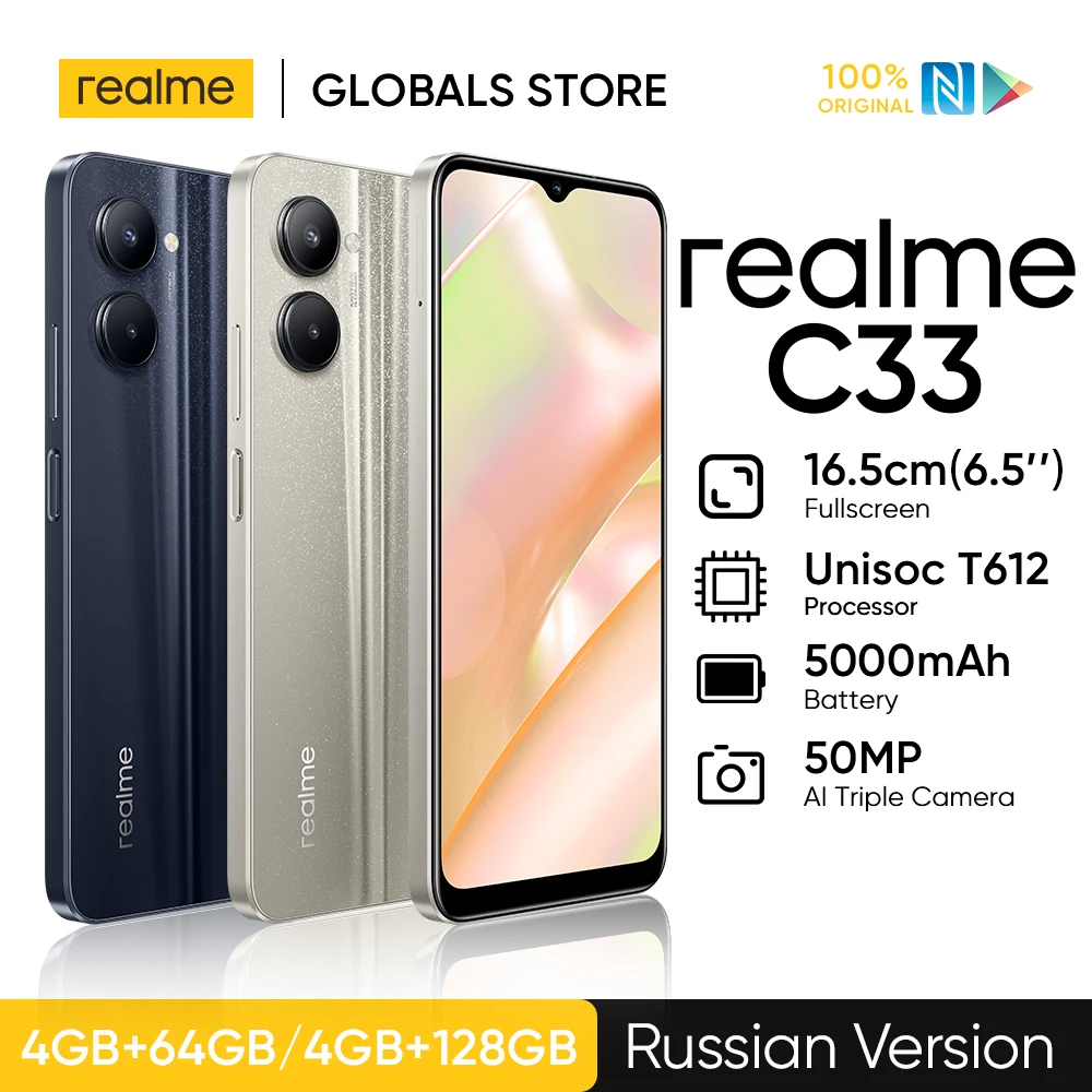 realme C33 Smartphone Octa Core Processor 50MP AI Camera 5000mAh Battery 8.3mm Ultra Slim 6.5″Fullscreen