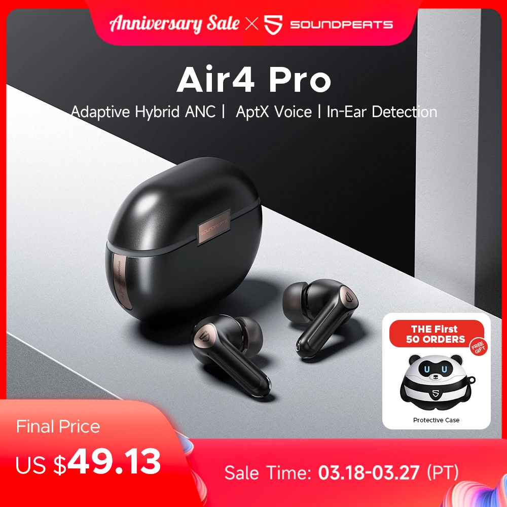 SoundPEATS Air4 Pro ANC Bluetooth 5.3 Wireless Earbuds with Lossless Sound & AptX Voice, Multipoint Connection, in-Ear Detection