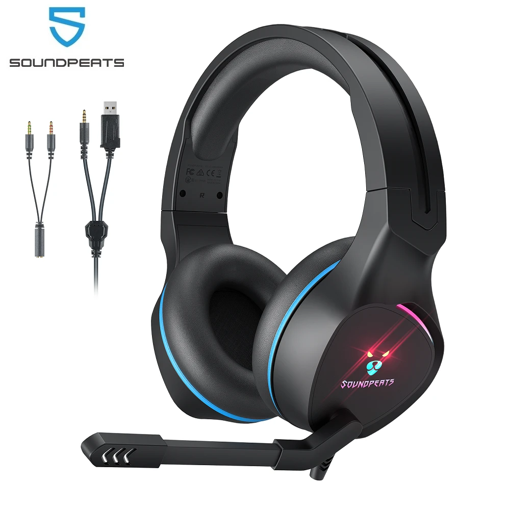SoundPEATS G1 Gaming Headset for Xbox PS4/5, Wired Headset with Microphone Over Ear, 50mm Drivers Stereo Sound, 3 RGB Colors
