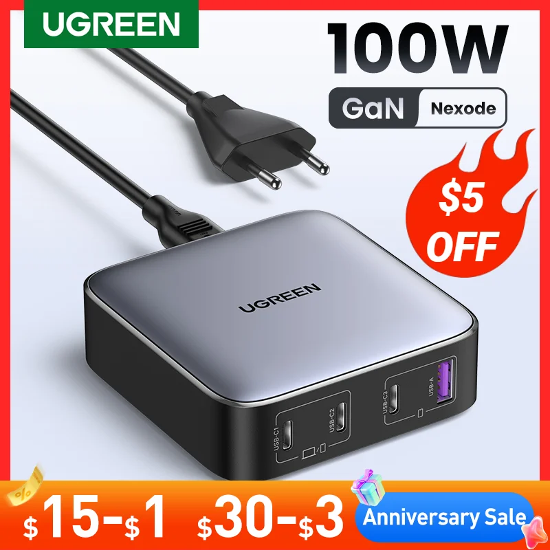 UGREEN 100W GaN Charger Desktop Laptop Fast Charger 4 in 1 Adapter For iPhone 15 14 13 12 Pro Max Phone Charger Xiaomi Samsung