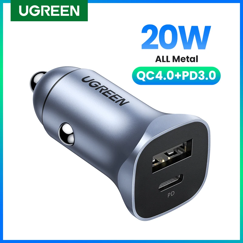 UGREEN Car Charger PD 20W USB Type C Quick Charge 4.0 3.0 QC Fast Charging for iPhone 14 13 12 Samsung Mobile Phone Car Charger