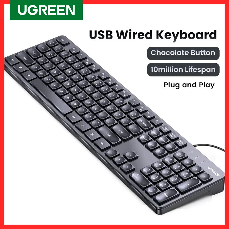 UGREEN Keyboard Wired US Layout English Keycaps 104 Keys Full Size for PC Laptop Ergonomic USB Keyboard 1.5M Cable Plug & Play