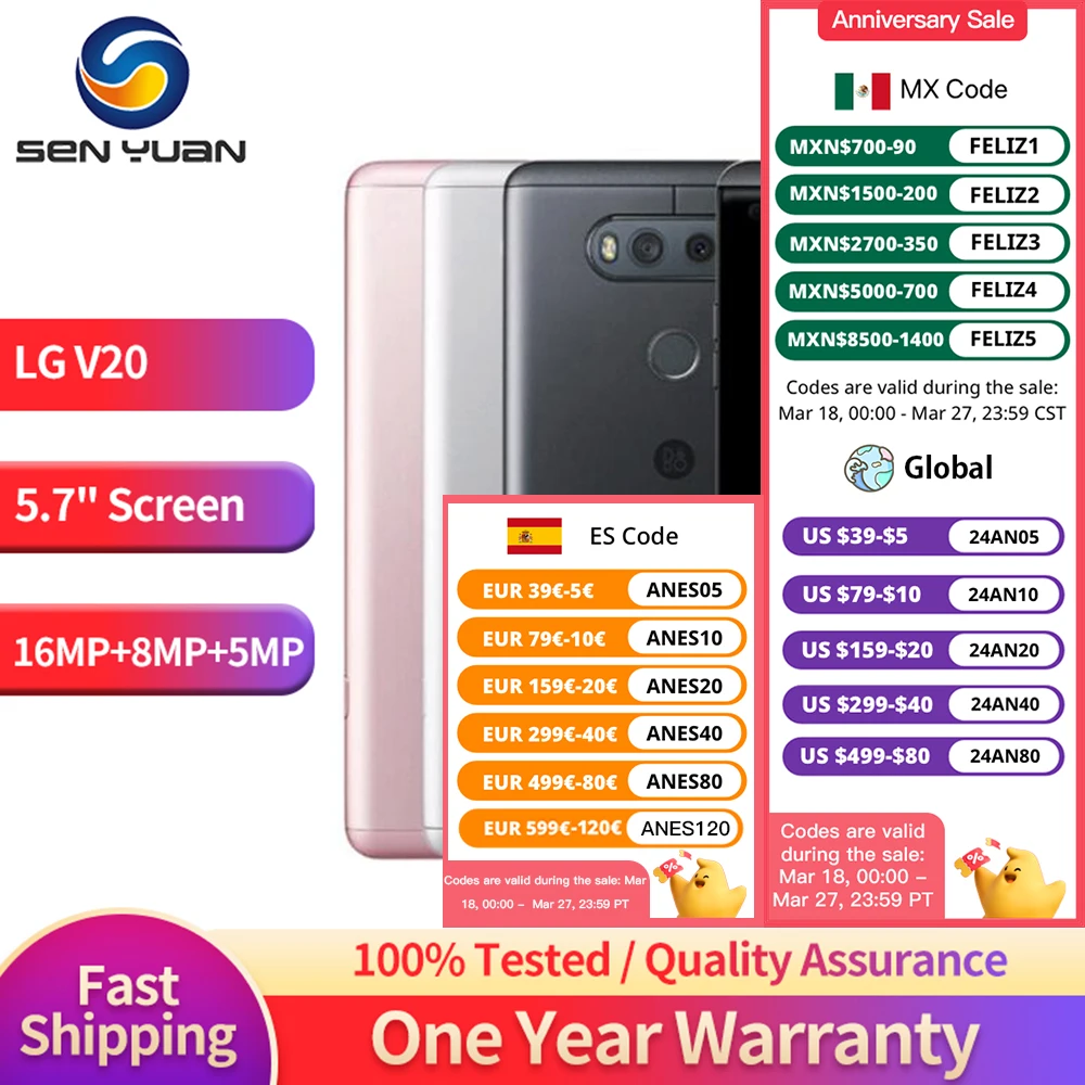 Unlocked Original LG V20 4G LTE Mobile Phone 4GB+64GB Android SmartPhone 5.7» QuadCore Snapdragon 820 16MP+8MP Camera CellPhone