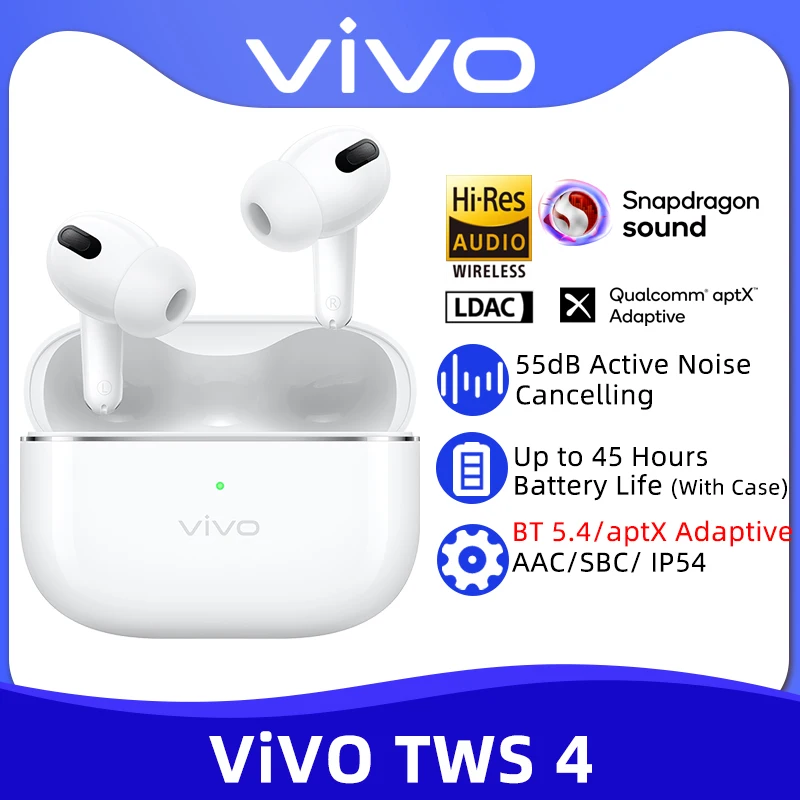 ViVO TWS 4 55dB Active Noise Cancelling True Wireless Earphone LDAC TWS Earphone Bluetooth 5.4 Up to 45 Hours Battery Life IP54