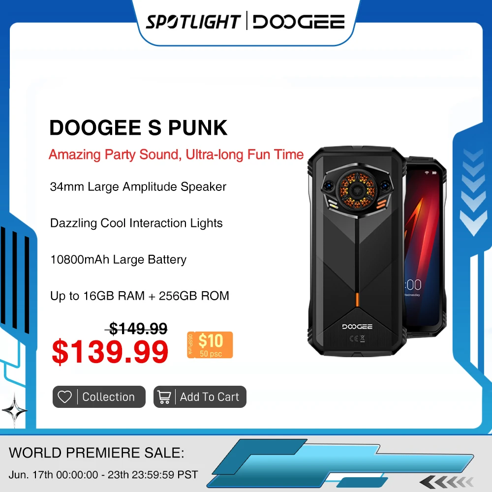 World Premiere DOOGEE S Punk Rugged Phone LED Light Effect 6.58″ 90Hz Display 6GB+256GB 34mm Large Amplitude Speake Android 14