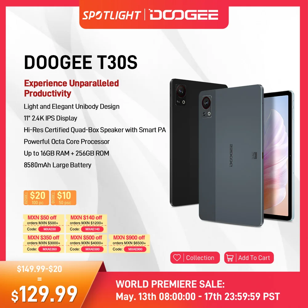 World Premiere DOOGEE T30S Tablet 11″ 2.4K TÜV Certified 16GB(6+10) 256GB T606 Octa Core 13MP Main Camera Quad Speakers 8580mAh