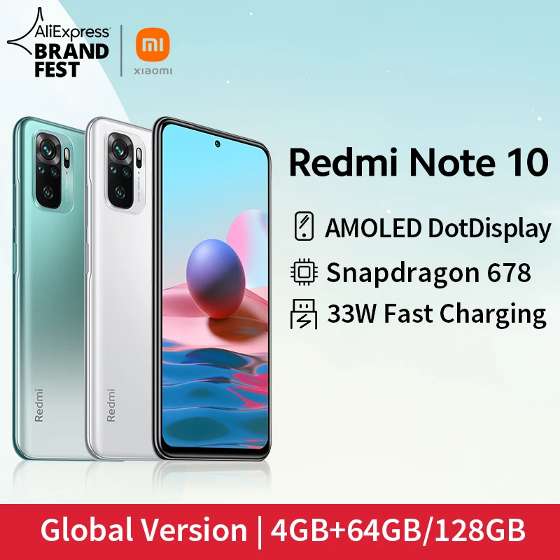 [World Premiere In Stock] Global Version Xiaomi Redmi Note 10 Smartphone Snapdragon 678 AMOLED Display 48MP Quad Camera 33W