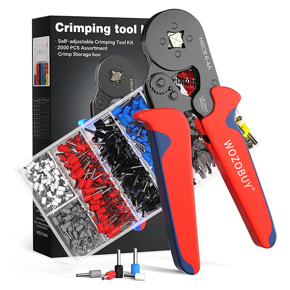 WOZOBUY Tubular Terminal Crimping Tool HSC8 6-4 Pliers Ferrule Crimper Tools Electrician Clamp Sets Wire Tips Hand tool set
