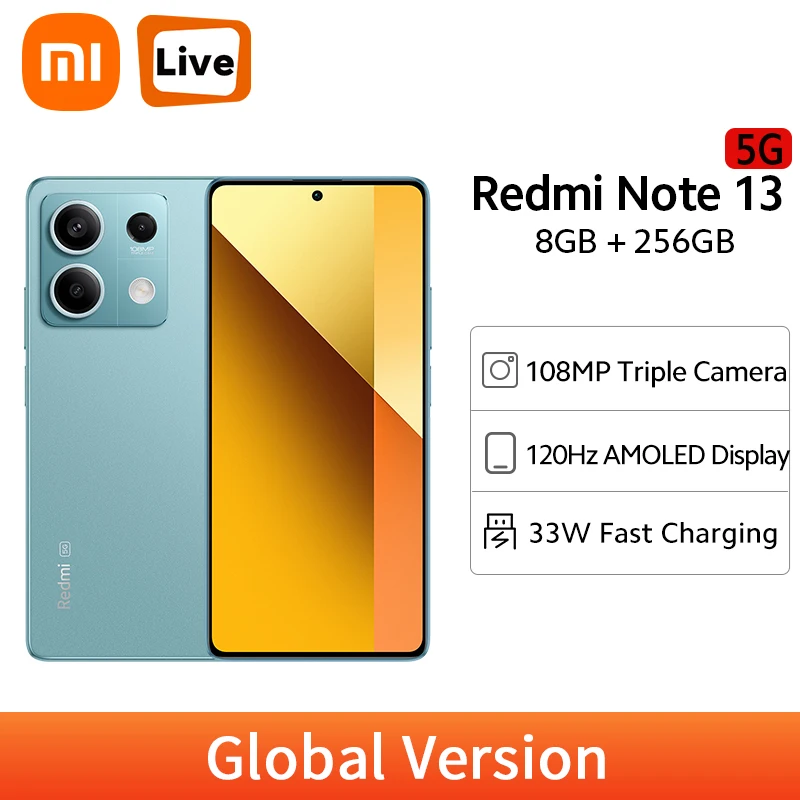 Xiaomi Redmi Note 13 5G Global Version Smartphone 108MP Triple Camera 120Hz AMOLED Display 33W Fast Charging MTK Dimensity 6080